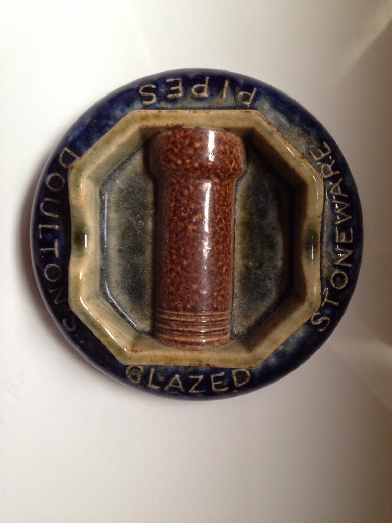 Doulton drainpipes this time; here we have an ashtray with a central pipe. We must all pay hommage to these simple drainpipes, as it was they and other utilitarian wares that funded the art department at Lambeth for so long!
