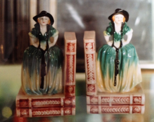 These miniature M Doulton figures can be found mounted on a variety of things from calendars to bookends.