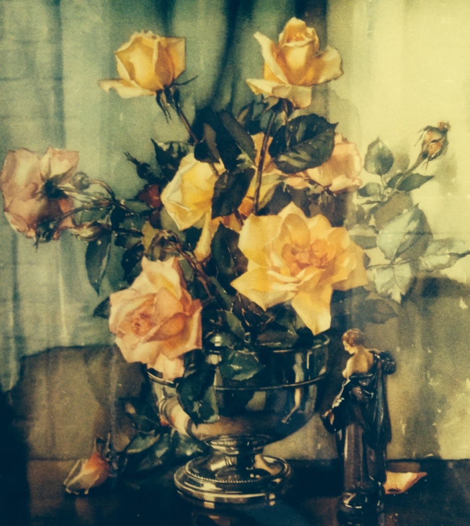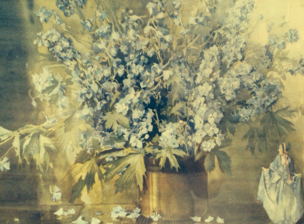 Whilst these pictures below appear a little bizarre or possibly kitsch today, when the originals were painted Doulton’s figures were obviously highly regarded even then to be used in still life pictures. The painters of these pictures remain largely unknown although I have a similar picture with Harradine’s Covent Garden figure with the signature Wood.