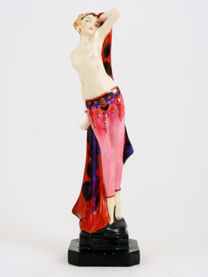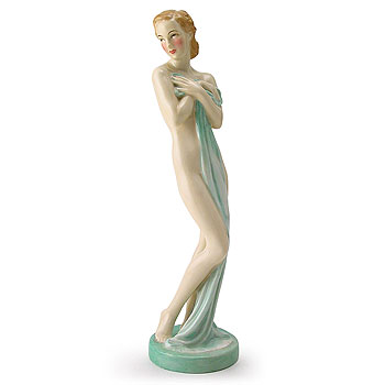The liberating period of the 1920’s to 1930’s often seems incongruous to non-Doulton figure collectors who associate ladies in ballgowns with Doulton figures, but those in the know, they recall that there are a small group of nude figures produced in the art deco period that encapsulate that movement perfectly. All the figures contained in this small band of lady figures were the brain child of Leslie Harradine, Doulton’s then principal figure modeler.