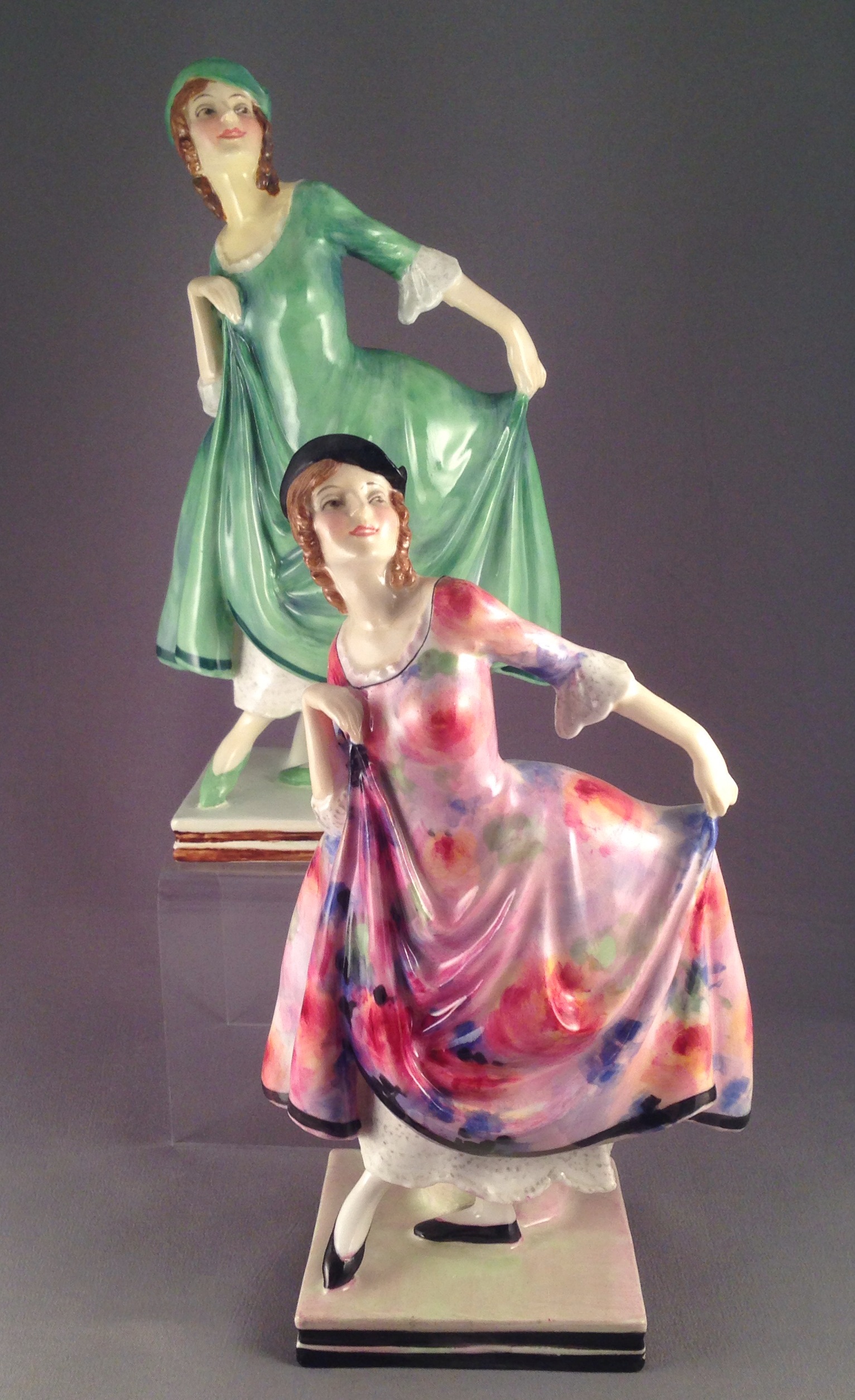 One particularly unusual lady is Frangçon HN1720 and 1721. Both versions were introduced in 1935, but rarely appear suggesting a much shorter production run to the withdrawal date of ‘by 1949’ suggested in Royal Doulton Figures. In my experience a withdrawal date of 1943 would be more accurate for most figures save for a handful of the most popular figures that were available to the US as late as 1944 and production of these resumed soon after the war ended. These include Autumn Breezes, the Orange Lady, Biddy Penny Farthing, Old a Balloon Seller and a few others.