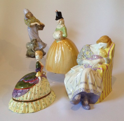 A group of early Harradine models, Fruit Gathering, Puff & Powder, Betty and Contentment.