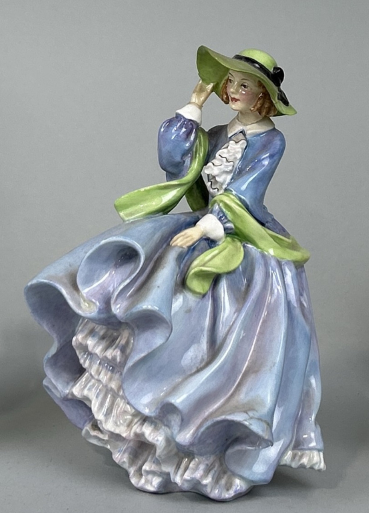 No one today can doubt that Leslie Harradine perfected what needed to be perfected in terms of creating commercially popular figures for Royal Doulton. Until 1920 few figures hitherto introduced can be said to have had the popularity we associate with Doulton figures to this day. Of course there was the ever popular HN1 Darling – the first figure in the collection and the first of many child studies, but there were no what non-Doulton specialists might term ‘pretty ladies’. The female studies introduced before 1920 tended to be sculptural and their differing sizes hindered their grouping to display them as a collection. In short a house style needed to be developed.