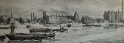 A drawing of the Albert Embankment by Arthur Pearce showing the extent of the Doulton works in 1924. Note the corner building that still stands today.