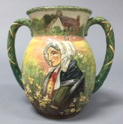 Doulton’s 1933 tribute to William Wordsworth (1770-1850), produced to commemorate his being made poet laureate, is among the most rare of the Loving Cups and Jugs first produced by Doulton in the 1930’s. The range of Loving Cups and Jugs was the brainchild of Charles Noke, Doulton’s famous Art Director at their Nile Street studios.
