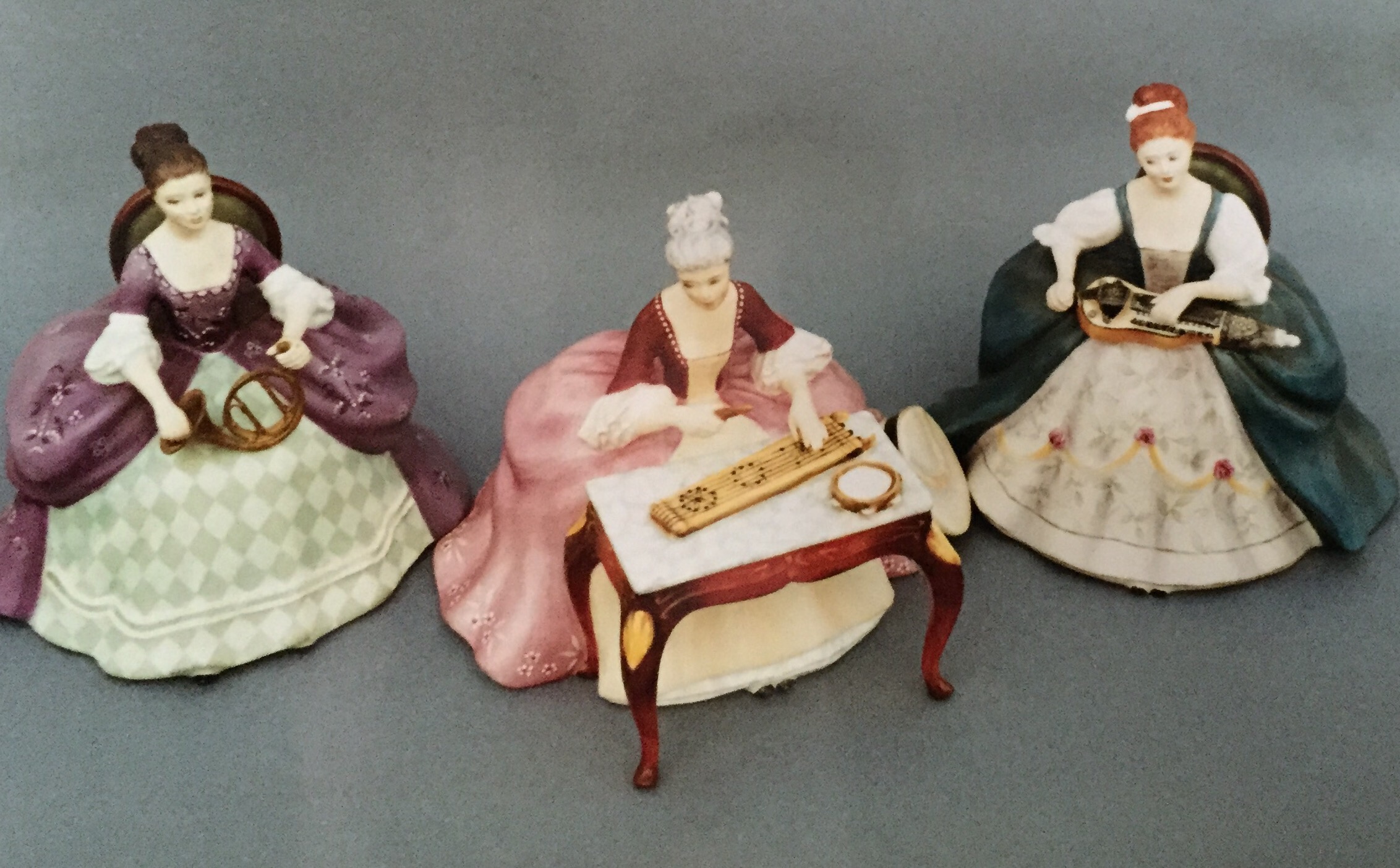 The twelve lady musicians who make up this elegant series were all modelled by the legendary Peggy Davies and the first figurine Cello was introduced in 1970 with the others progressively introduced from that year.