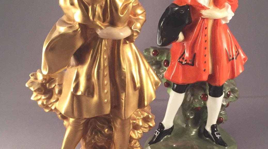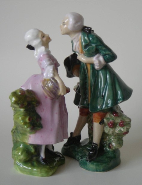 Interestingly the two Doulton models’ bases fit so that the couple can kiss if the owner so wishes. They appear in this 1920’s figure catalogue titled Personalities and Porcelain along with a group of other early figures. Also of interest to note is that HN683 and HN 637 the last versions of each were actually made in earthenware rather than china like the other versions.