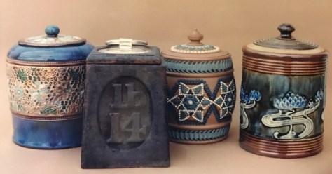 Four Lambeth examples: Chiné, simulated metal, Silicon and an art nouveau example.