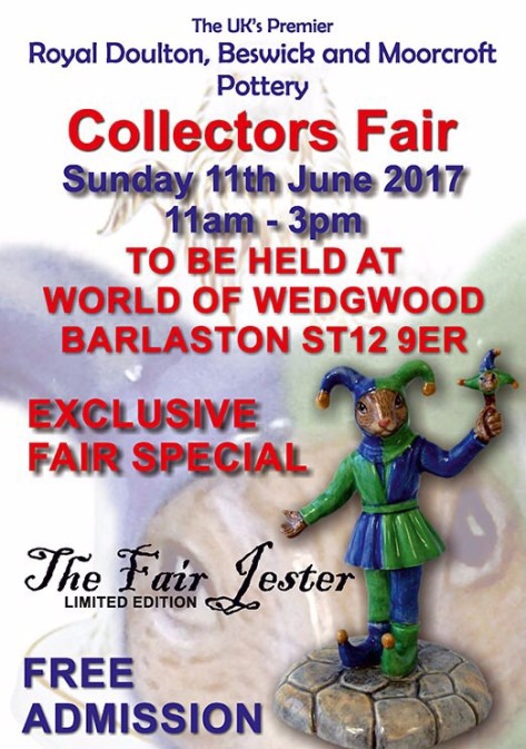 Royal Doulton’s Bunnykins characters have been entertaining us since 1934 and this summer The Fair Jester will be the Doulton Collectors Club fair exclusive at the summer Doulton show (11th June 2017) being held at the World Of Wedgwood, Royal Doulton’s home.