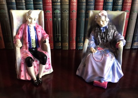 This charming pair were introduced in 1930 and withdrawn at some point during WWII, before being reintroduced with a band of their most popular figures with a new HN number and paired down detail in the modelling. The latter were in production from 1949-59.