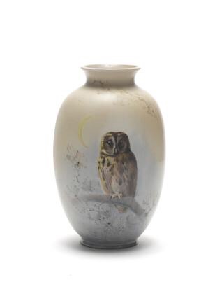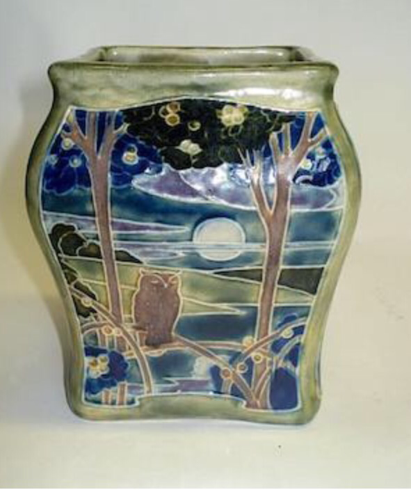 Even before the early HN animals, owls featured in many Doulton Lambeth works of art! The great Leslie Harradine modelled this vase for reproduction; ‘night and day’ shown here with the owl central to the night panel!