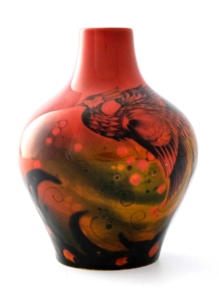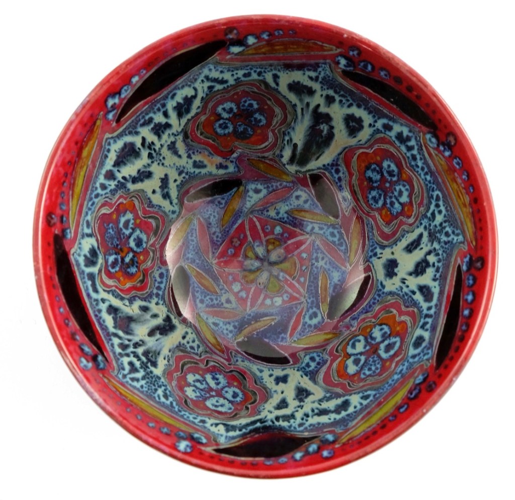 Charles Noke continued to experiment with glazes long after the departure of Cuthbert Bailey with whom he had perfected the Flambé glaze in the early 1900’s. And so in 1920 Sung was introduced, whereby painted decoration, colour and gilt are fused with the a flambé glaze.