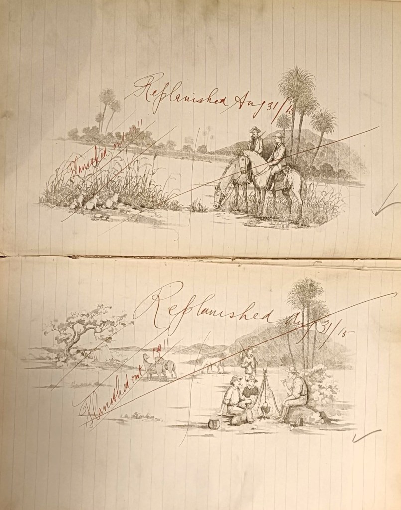 A further image from a copper plate book illustrating two further scenes in the series. You can clearly see the comment Replanished (flattened out) and the date August 31 1915.