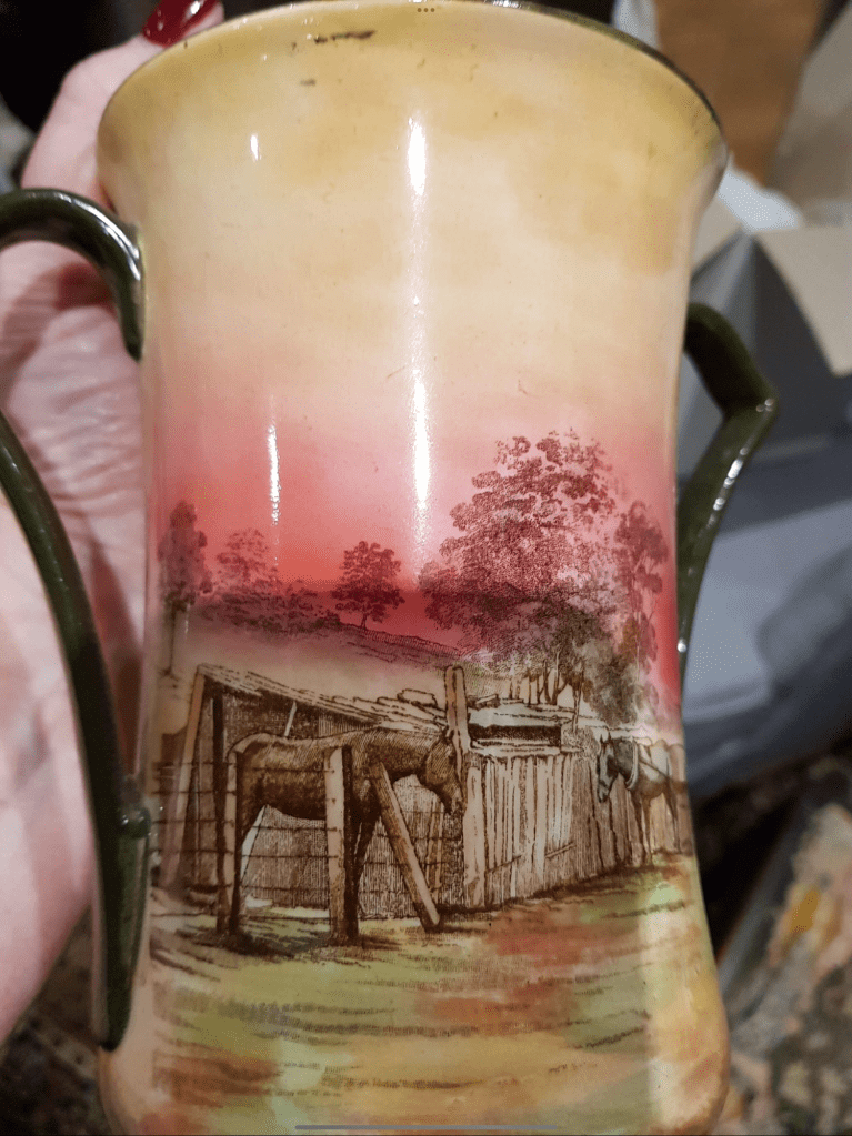 The scarcity of items discovered in this remote outback design is hard to fathom given the popularity of seriesware designs the world over; the sole explanation I can put forward is the subject matters‘ appeal was originally aimed at Australian collectors. Yet, even there so few examples have been discovered this design truly remains a rarity.