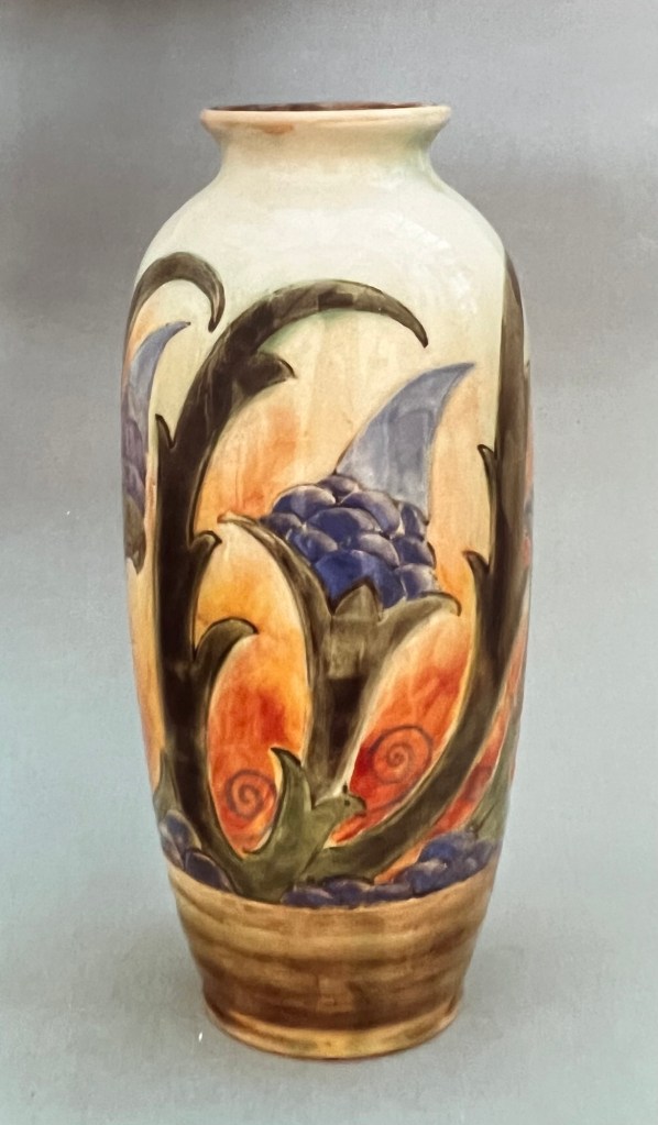 This ware carries one of two backstamps, the first ‘Designed by Frank Brangwyn’ and also ‘Brangwynware’ a Doulton pastiche.