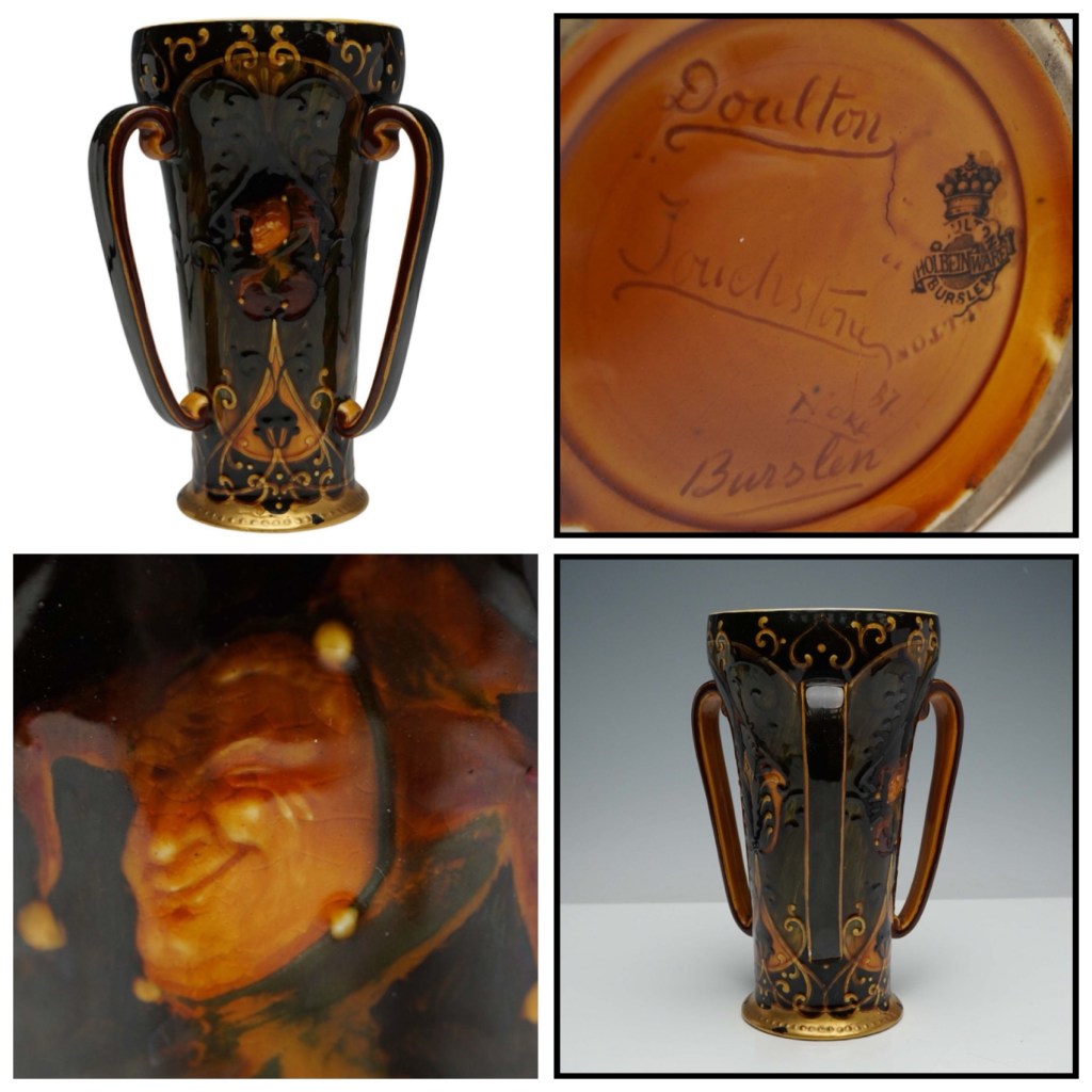 A cursory glimpse through the Royal Doulton paper archives illustrates the position White was held in, as you see his name next to many important exhibition vases with the words ‘Figures by Mr. White’.
