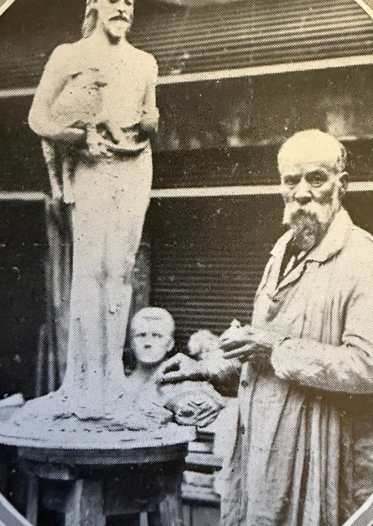 Tinworth in his studio at Lambeth working on a Good Shepherd statue.