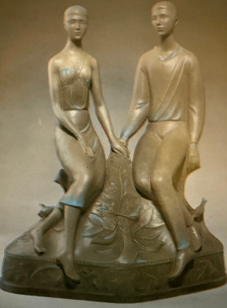 The last of the major world exhibitions took place in Brussels in 1958 and befittingly, Doulton won the only Grand Prix awarded to a British pottery firm for the Peggy Davies study ‘Art and Technology’. Manufactures were subsequently not included in world exhibitions.