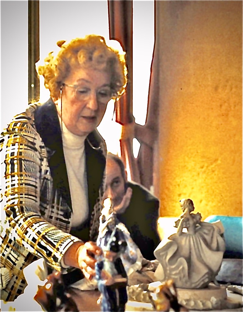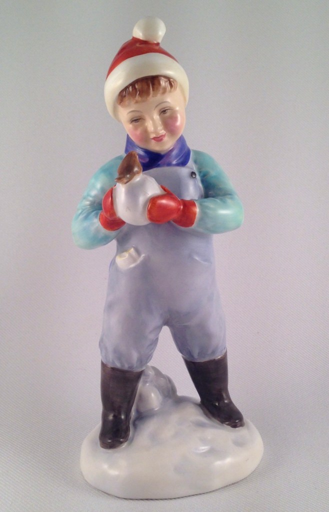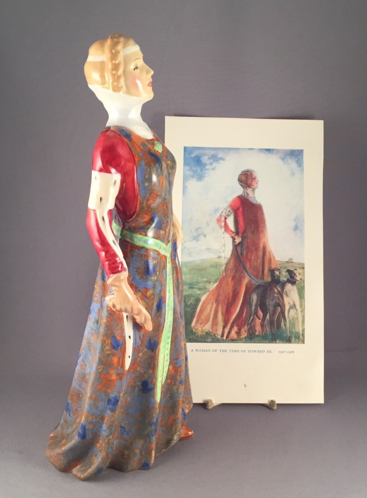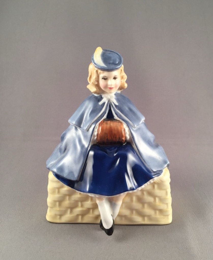 Peggy Davies is often credited as taking over the mantle of figure modelling from Leslie Harradine, but in labelling her as such we miss a quintessential part of her, namely her love of life. It is this love of life that epitomises so many of her figures and when considering what makes a classic Peggy Davies figure we must really consider the time when the piece was modelled, as her style changed dramatically over the years. In part this change can be explained as personal but it can also be accounted for by the restrictions that were placed on her by the managers of Royal Doulton over their years of association, as they strove to create an instantly recognisable house style. Many collectors can instantly recognise a Harradine figure from one of Peggy’s, and some say that she lacks the skill of Harradine. However, I would simply argue that she worked in a different time, not only in relation to the fashions of that time but also the strict restrictions placed upon her regarding, for example, the number of parts a figure could have.
