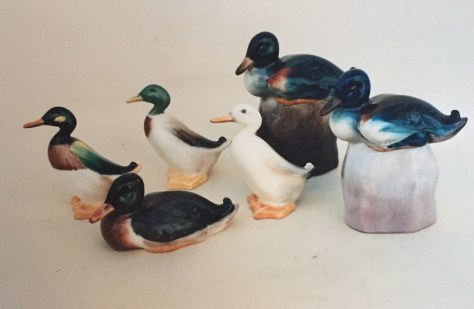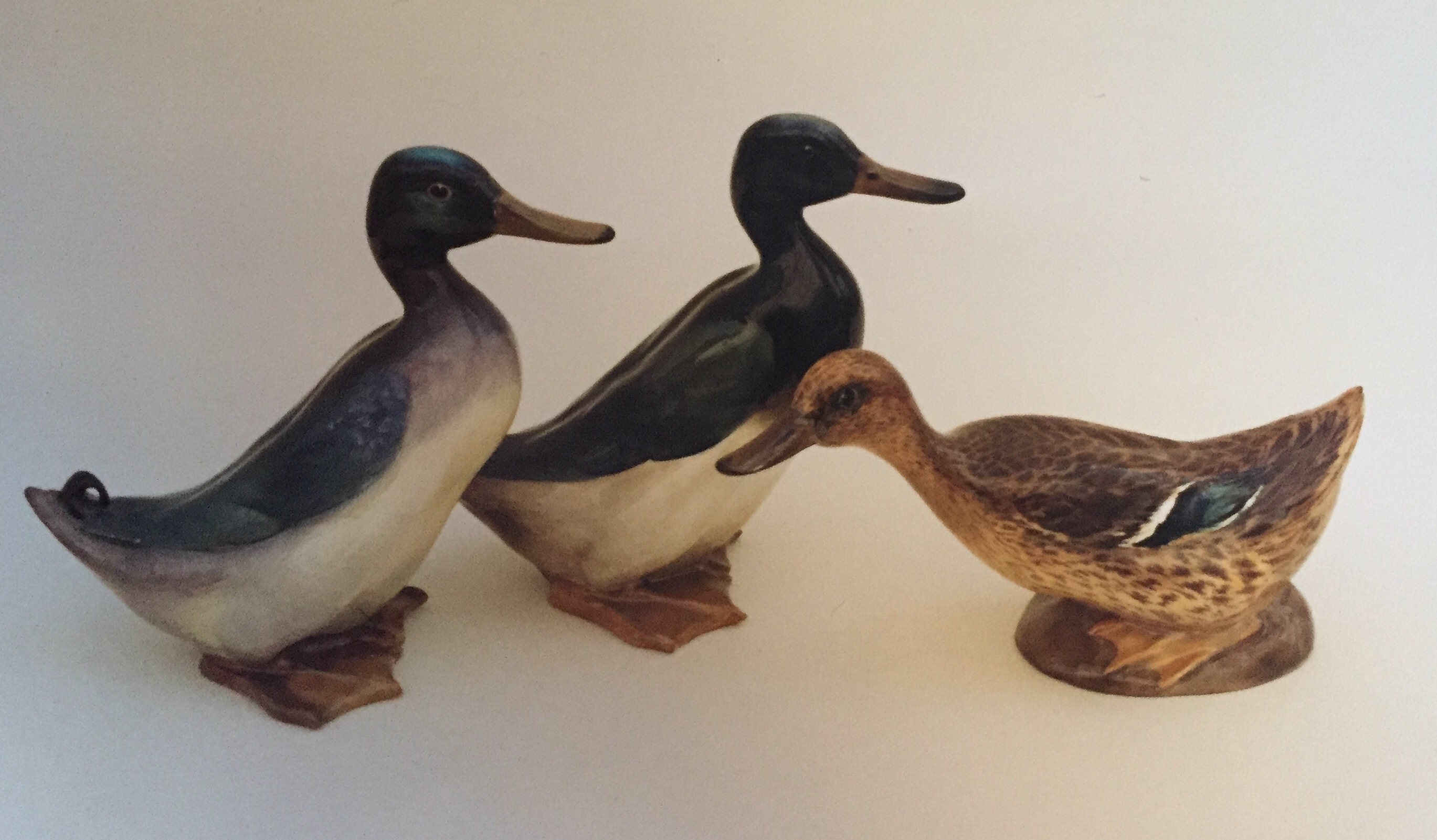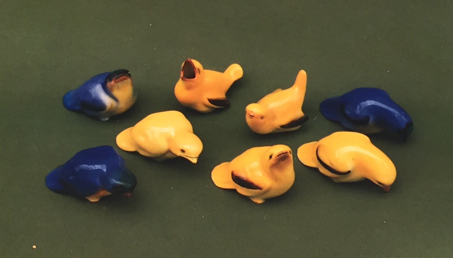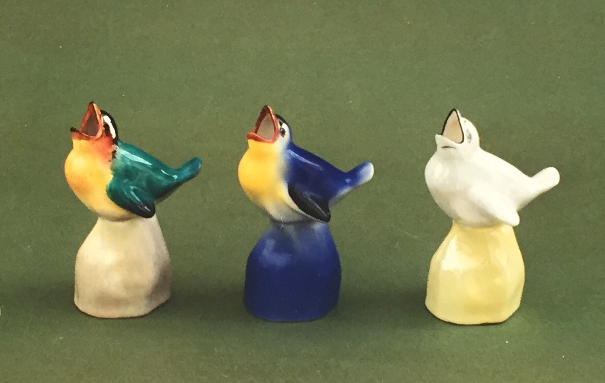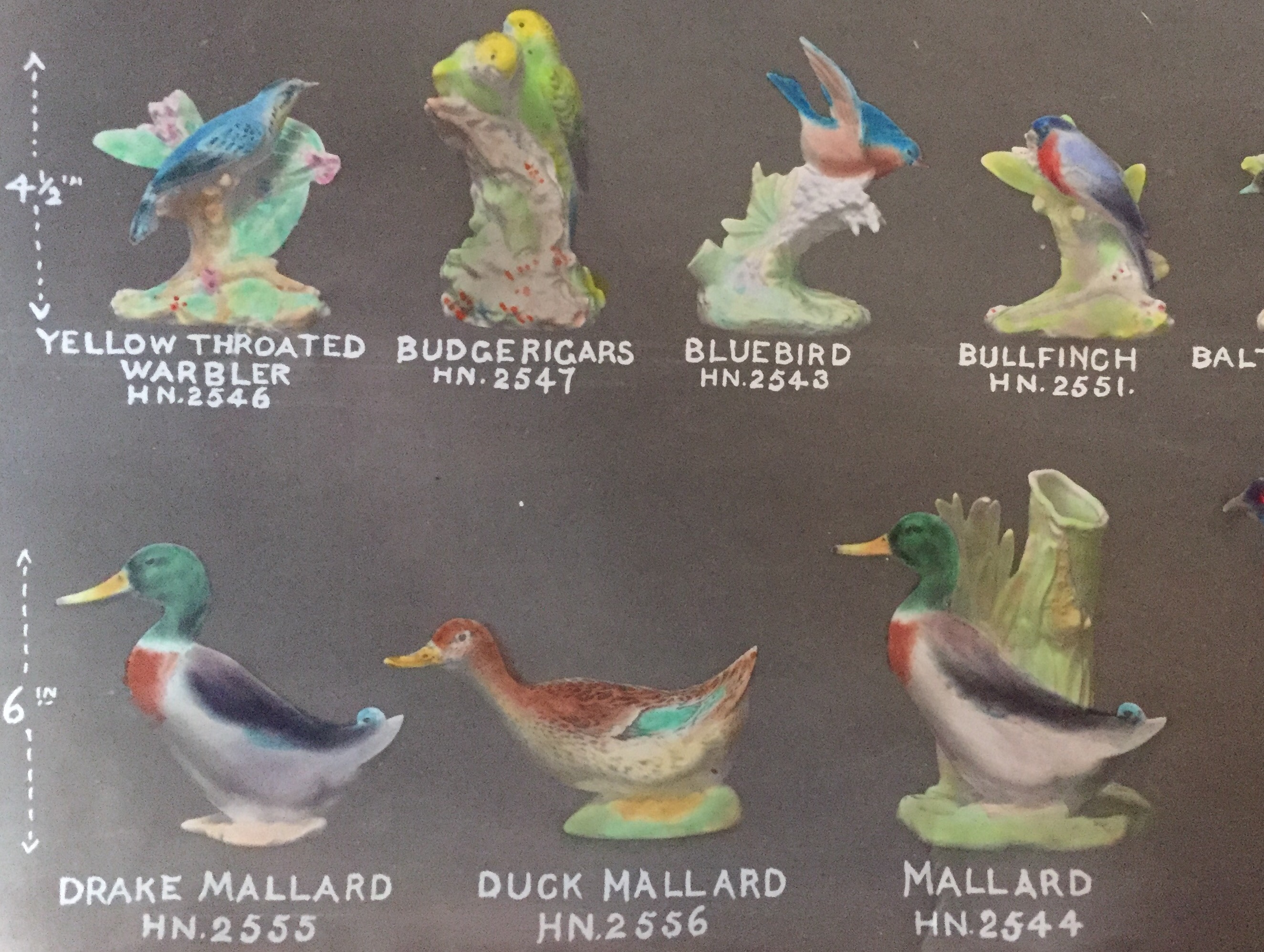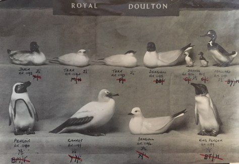 A selection of rare Royal Doulton birds including a character parrot (far left) holding a perpetual calendar in its mouth!