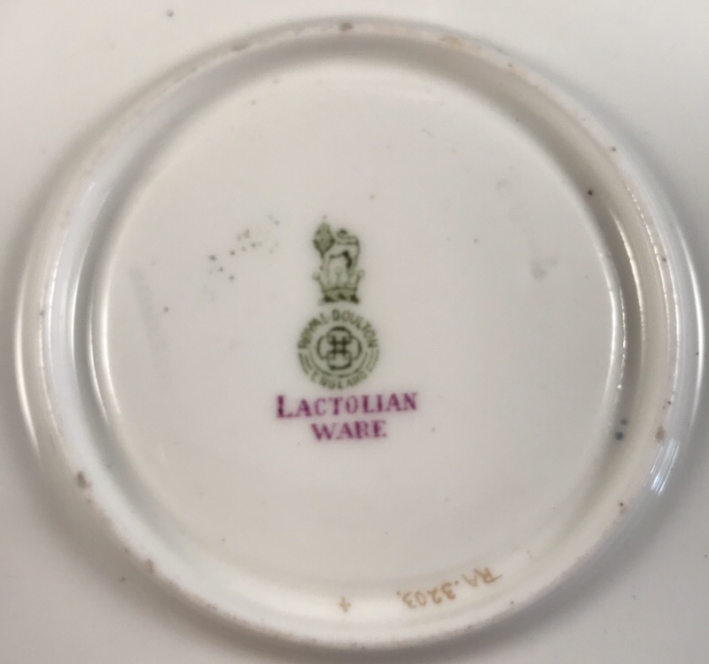 The base of a saucer with the Lactolian name, although that was not always used on every item produced.