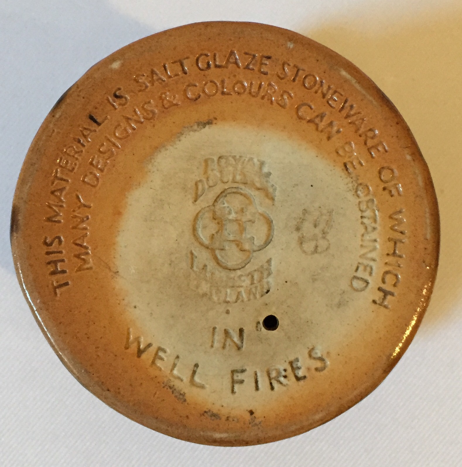 The light green version in a matt glaze bears no indication of its use but simply the usual Doulton impressed mark, suggesting Doulton sold them too as fancies, or ashtrays, or indeed mini well fires!