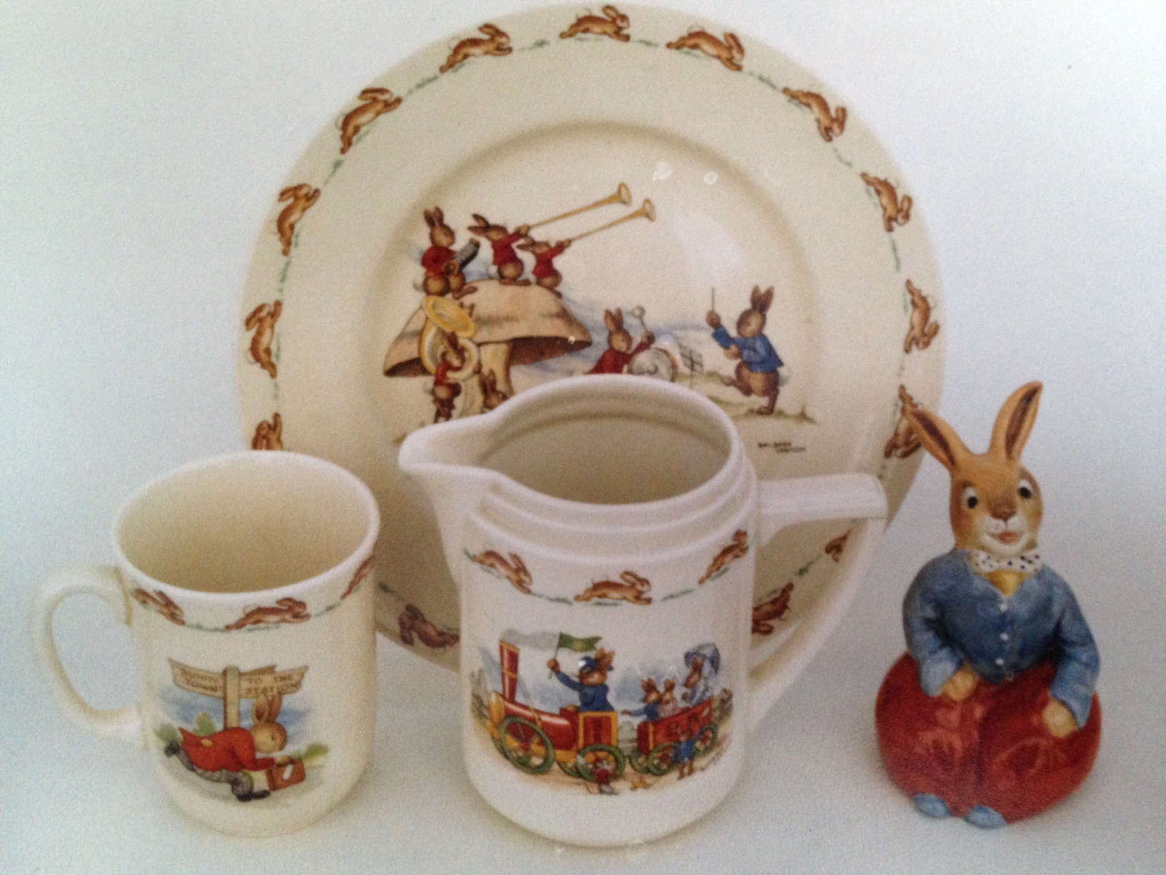 With so many collectors of Doulton’s famous Bunnykins nursery ware out there, it is hardly a surprise that it reamins a popular line to this day. Originally created by Barbara Vernon (she took her mother’s surname when she became a nun) in 1934 and famous patrons of this ware have helped perpetuate its success.