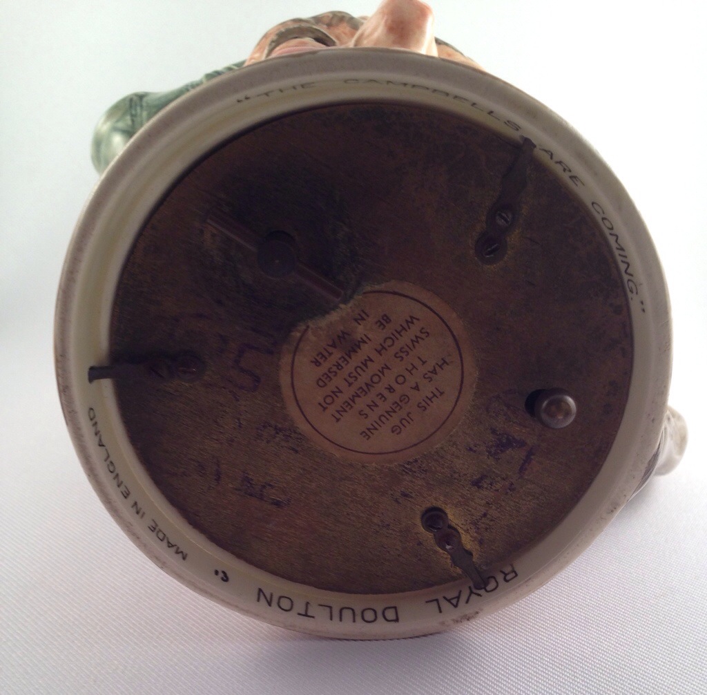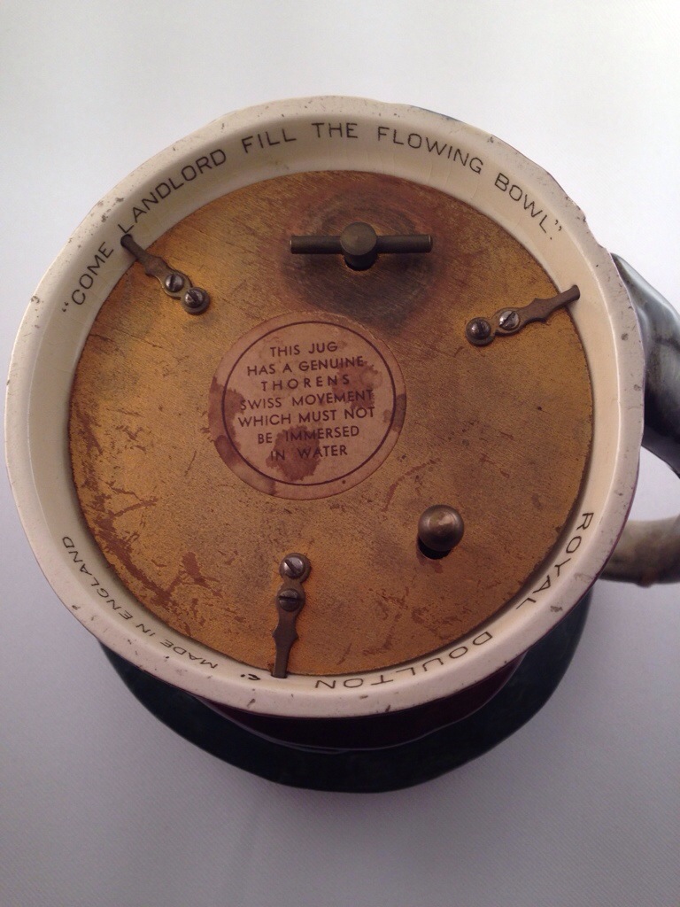 Each of these jugs is fitted with a ‘Thorens’ Swiss movement and the title of the melody it plays is printed around the base of the jug.
