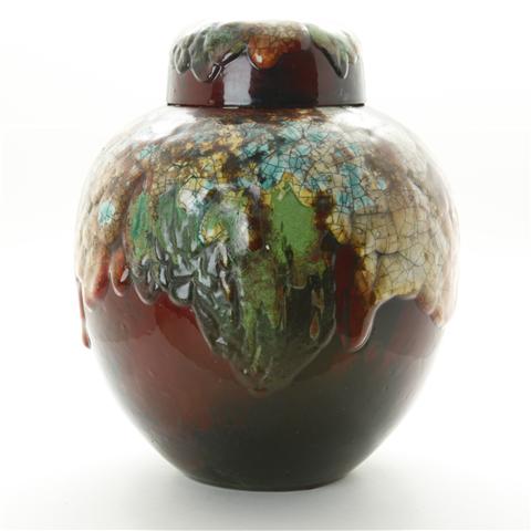 Another glaze worthy of inclusion here is perhaps the most magnificent of all. Chang ware was introduced in 1925 and involved a thick body upon which multi-coloured thick glazes were allowed to run and crackle – contrary to all usual pottery rules.
