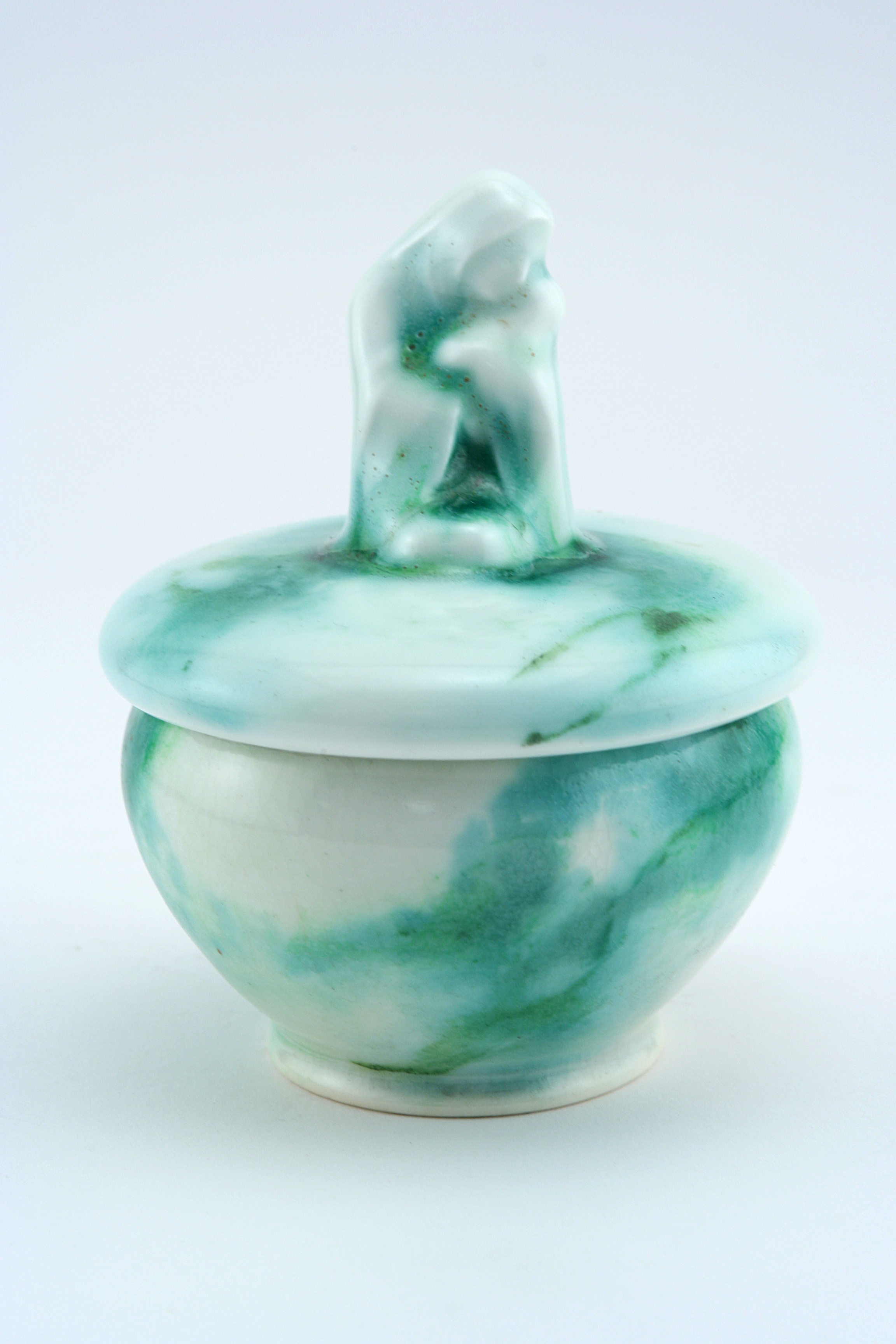 Chinese Jade lidded bowl with ‘Despair’ HN596 as the finial (the name of this figure is only a name given when the original figure book was published in 1978 as there is no record of its actual name).