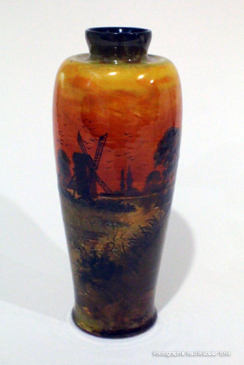 Other Doulton wares featured Dutch scenes such as this rustic Holbein ware vase painted with a windmill scene.