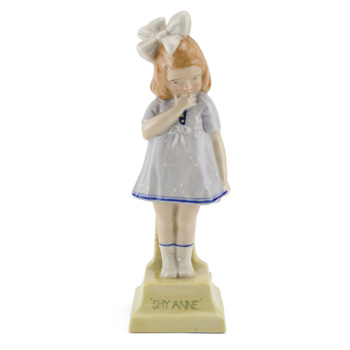 The prominence and popularity of Darling HN1 has proved over the last century that child figures are among the most popular Doulton have produced as part of the HN figure collection. Darling was sculpted by the great Charles Vyse and as was often the case in the first half of the twentieth Century, Charles Noke, Doulton’s art director approached prominent sculptors of the time to provide models for possible inclusion in the collection.  In the first decade of production of the HN collection Darling remained a clear favourite of collectors, it is therefore no surprise to see that many other child studies followed this iconic sculpture. These first studies remained somewhat sculptural, just like Darling, who was succeeded by a line-up of other famous faces including Dolly, Shy Anne HN60, the Coquette HN20 and a handful of Noke’s own studies such as the very rare Boy on Crocodile HN373.
