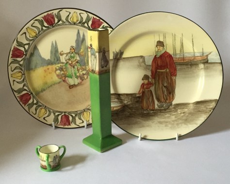 Equally charming are the two seriesware plates at the top of the page, with a deco Doulton figure named Derrick also in Dutch dress.