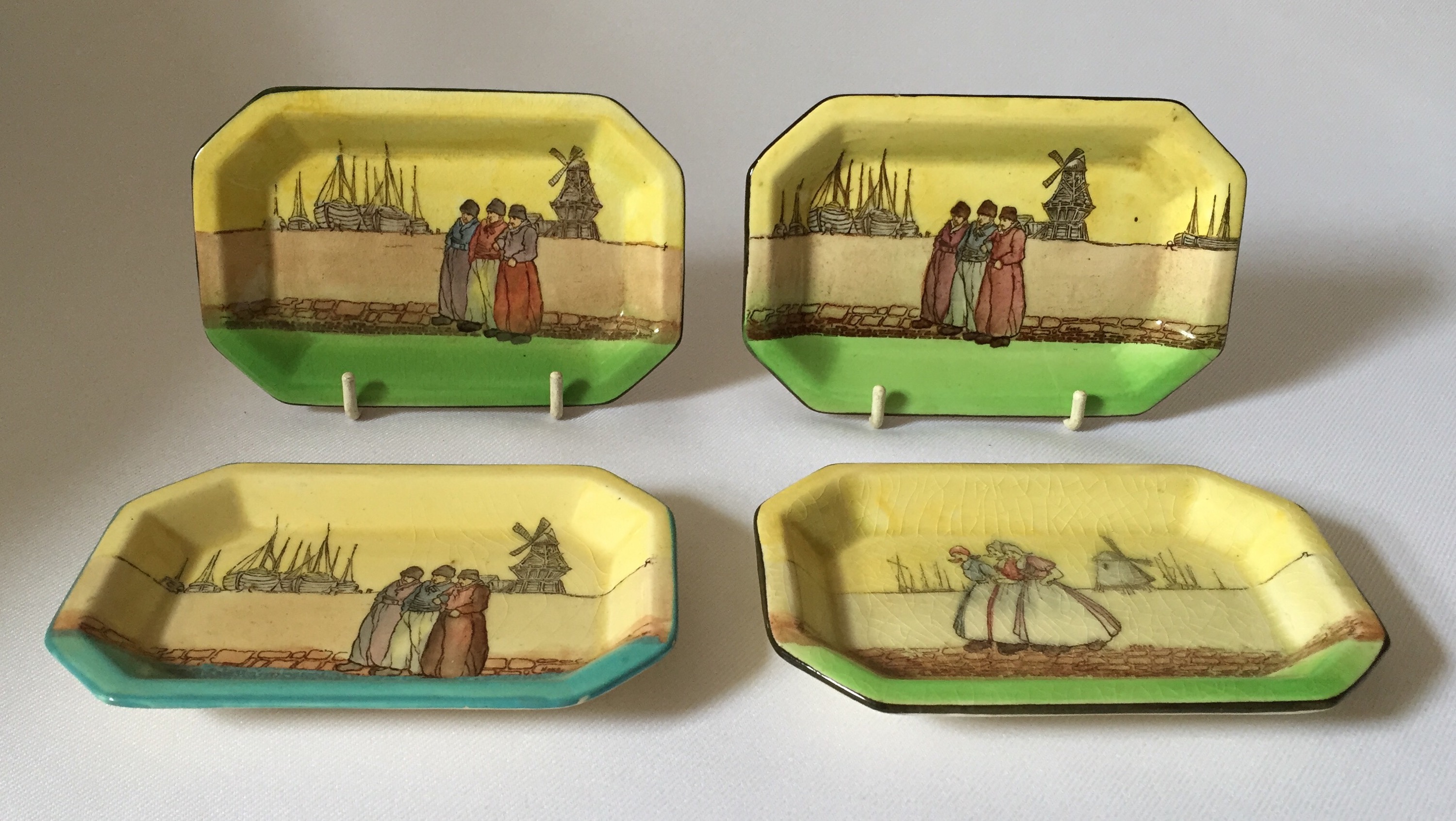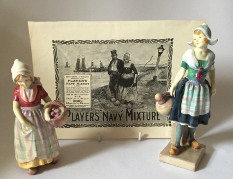 Two colourways of popular 1930’s Dutch figures Annette and Gretchen, and an illustration showing the popularity of all things Dutch in the early 20th Century.
