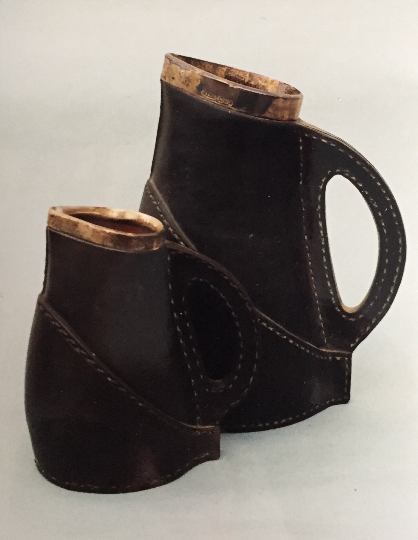 Two blackjacks with silver collars dating them to 1891 and 1900.