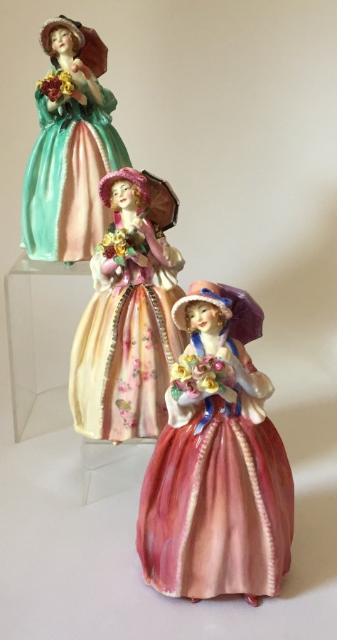 Whatever you particular interest in Doulton figures you soon realise that themes do occur within collections, such as those ladies with feet popping out under the hems of skirts or those carrying parasols.