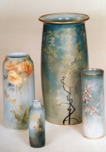 Velluma is a particularly rare ware today and pieces rarely turn up. The body has an almost parchment texture to it and the tea wares particularly are prone to damage. The colours are often quite muted, which adds to the vellum feel of this particular ware. These pieces were fired at high temperatures to enhance the soft effect desired.
