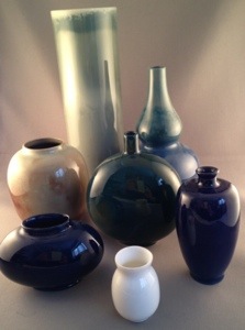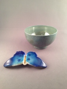 The unique Titanian glaze uses a titanium oxide which results in a bluey colour and pieces of Titanian ware can vary from white to dark blue glazes.
