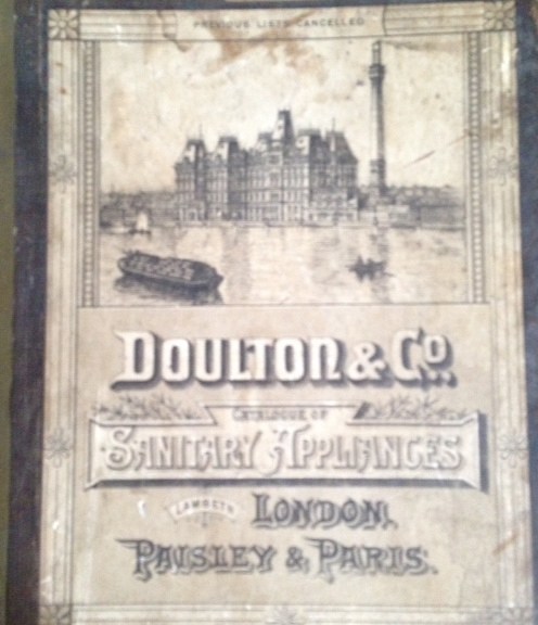 Hardly the topic of a long article but the discovery of a box of original Doulton glass plates used for their catalogues and adverts from the 19th and early 20th Centuries inspired me to share some of them with you all as I imagine they were long discarded as not interesting. Aside from the Victorian style used, you can get a glimpse of the sheer variety of customers that Doultons must have supplied from grand hotels to shipbuilders!! Over the years I have come across a number of early ‘Sanitaryware’ catalogues where such items as the ones in the pictures are illustrated.