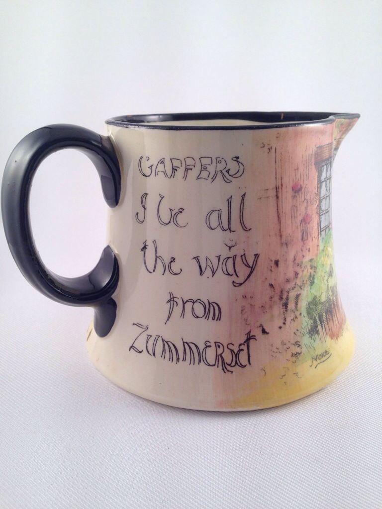 The reverse of the same jug with the inscription ‘GAFFERS I be all the way from Zummerset’.