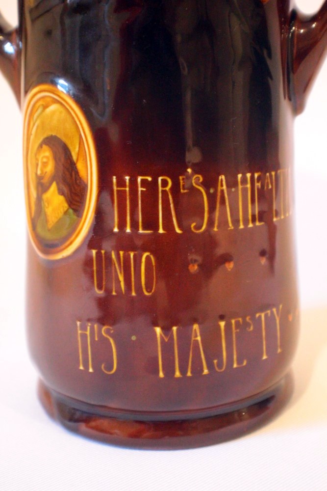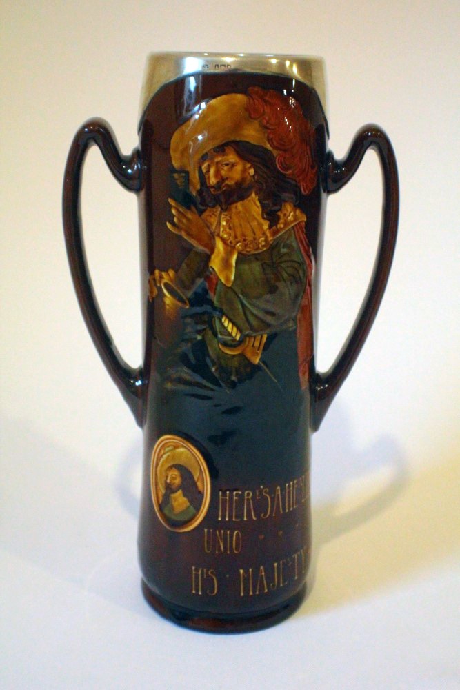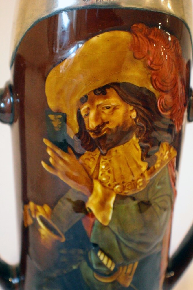 Well in the case of this flask or vase it is certainly Holbein. Although Similar in style to Rembrandt with its portrait cartouche the body immediately tells us it isn’t. Rembrandt ware can be distinguished by its body and typically rough surface indentations, together with its heavier weight.