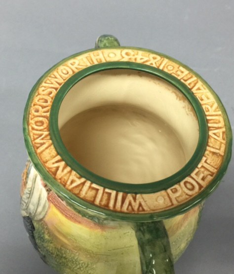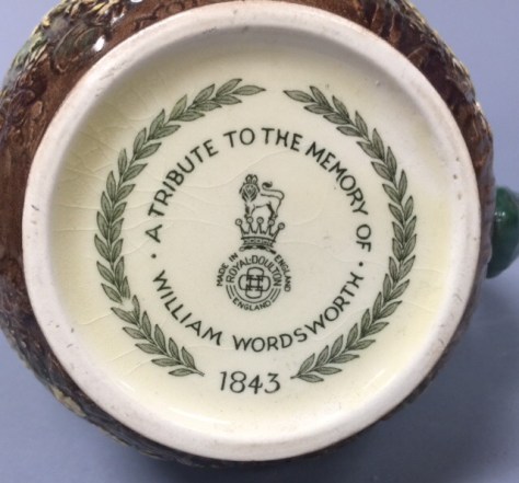Doulton’s Pied Piper Jug was produced in a limited edition of 600 pieces in 1934 and designed by both Noke and Fenton. Measuring 10″ it depicts the two aspects of the famous take on each side: the removal of the rats watched over by the mayor and then the children leaving after the town’s refusal to pay the Piper his fee. As was typical of these limited edition pieces the base is also of great interest; here there is a version of the tale printed for collectors.