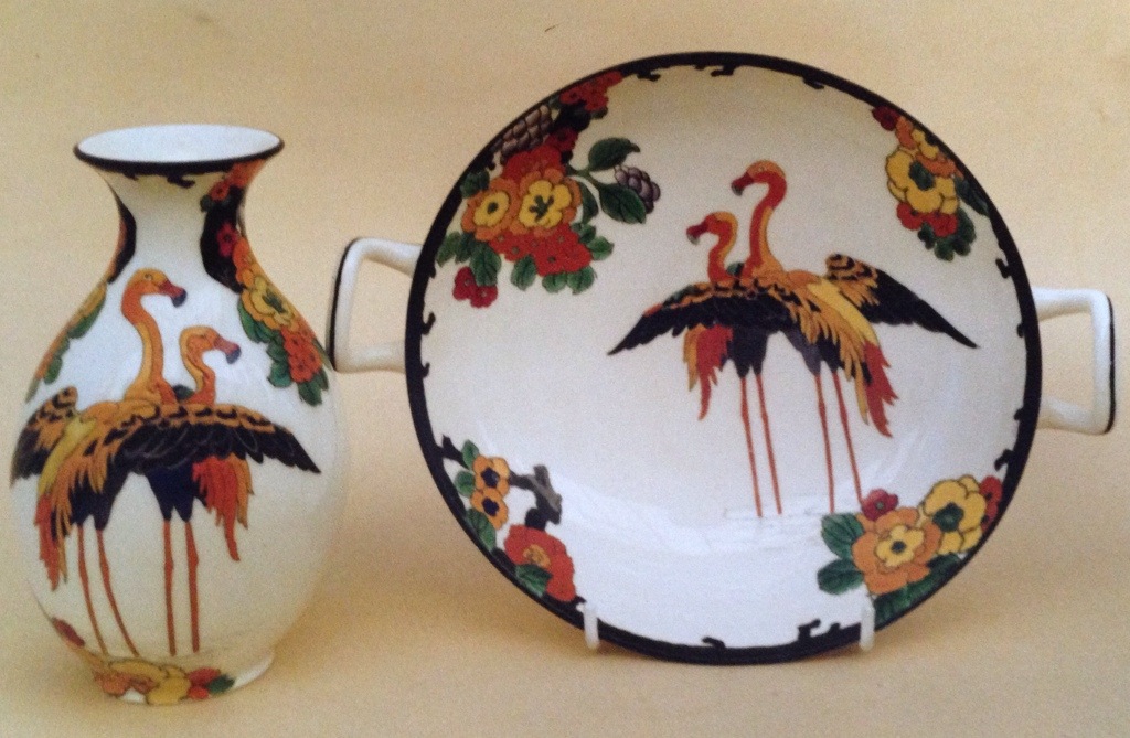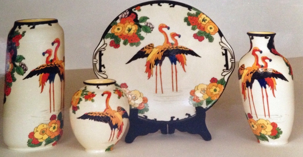 Typically prunus and flamingos feature on this first type of mandarin ware.