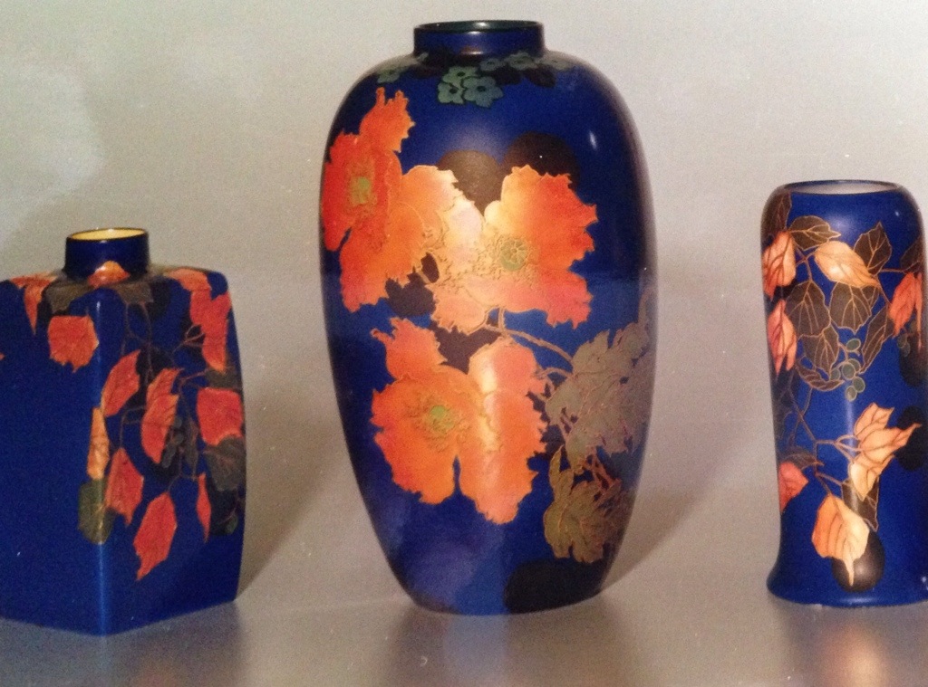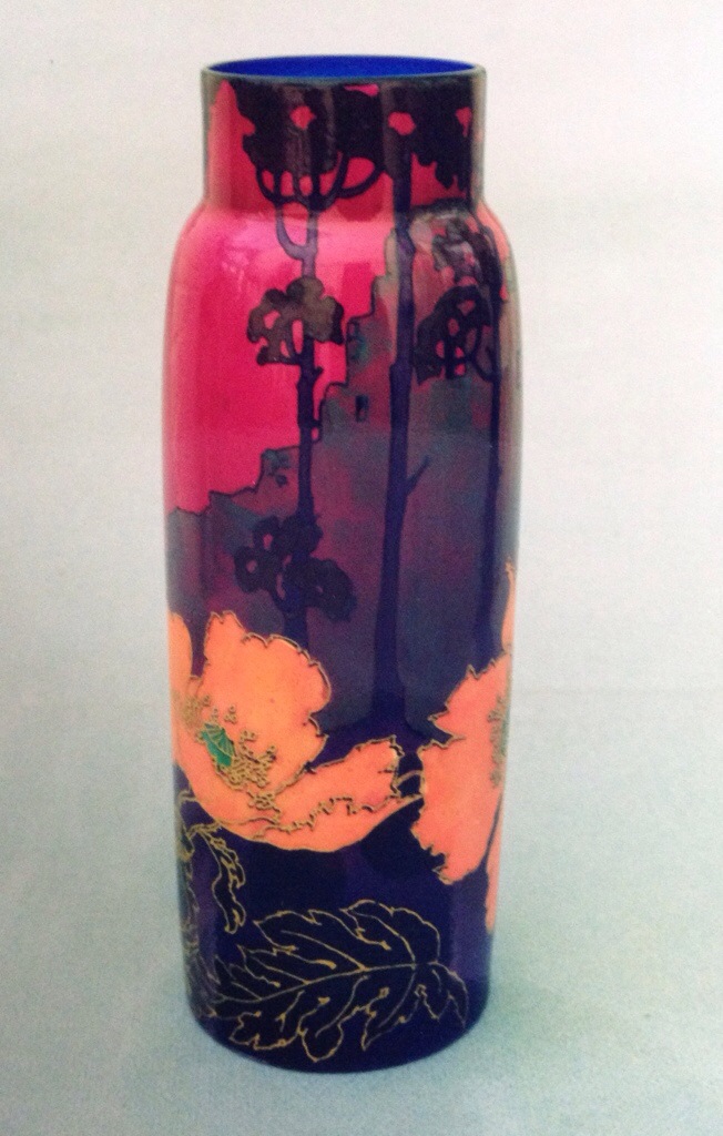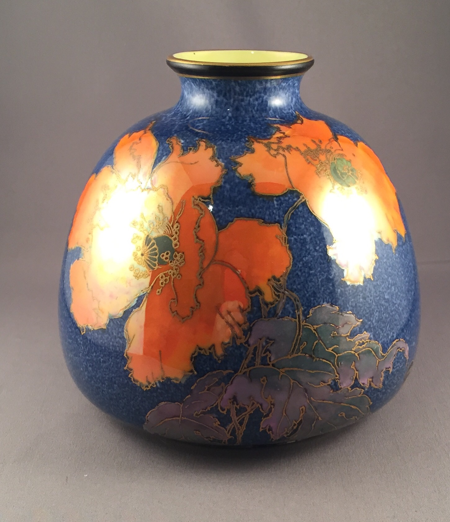 The second is much more delicate and feature lustred poppies generally against a blue background. As with many Doulton wares the shapes of vases used really distinguish this second type of Mandarin ware.