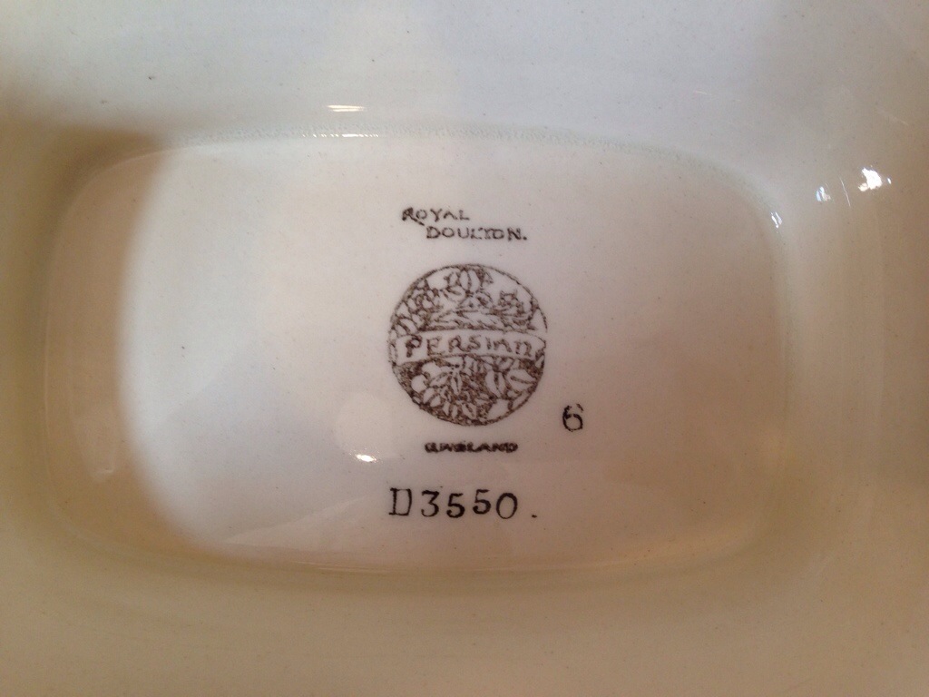 This second look at Doulton’s Persianware is solely focused on seriesware. There are three variations of this ware, A, B and C. The first designs were introduced around 1912 with a white background. This would be replaced in 1917 with a blue background.