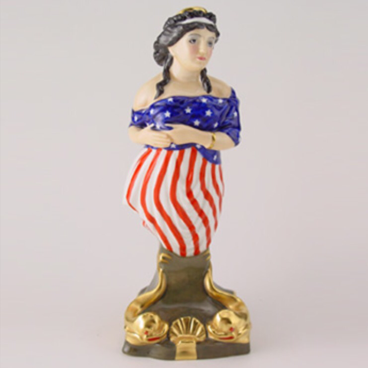 Introduced between 1980-83, Doulton’s ‘Ship’s Figureheads’ collection marked a new direction led by Eric Griffiths, Royal Doulton’s then Head of Ceramic Sculpture, who commissioned the freelance artist Sharon Keenan to produce these six models based on her own research in museums and dockyards on both sides of the Atlantic. The six limited edition of 950 pieces were Ajax, Benmore, mary Queen of Scots, Hibernia, Chieftan, Lalla Rookh, Pocahontas and Nelson. Each model came in a presentation box with plinth and certificate.