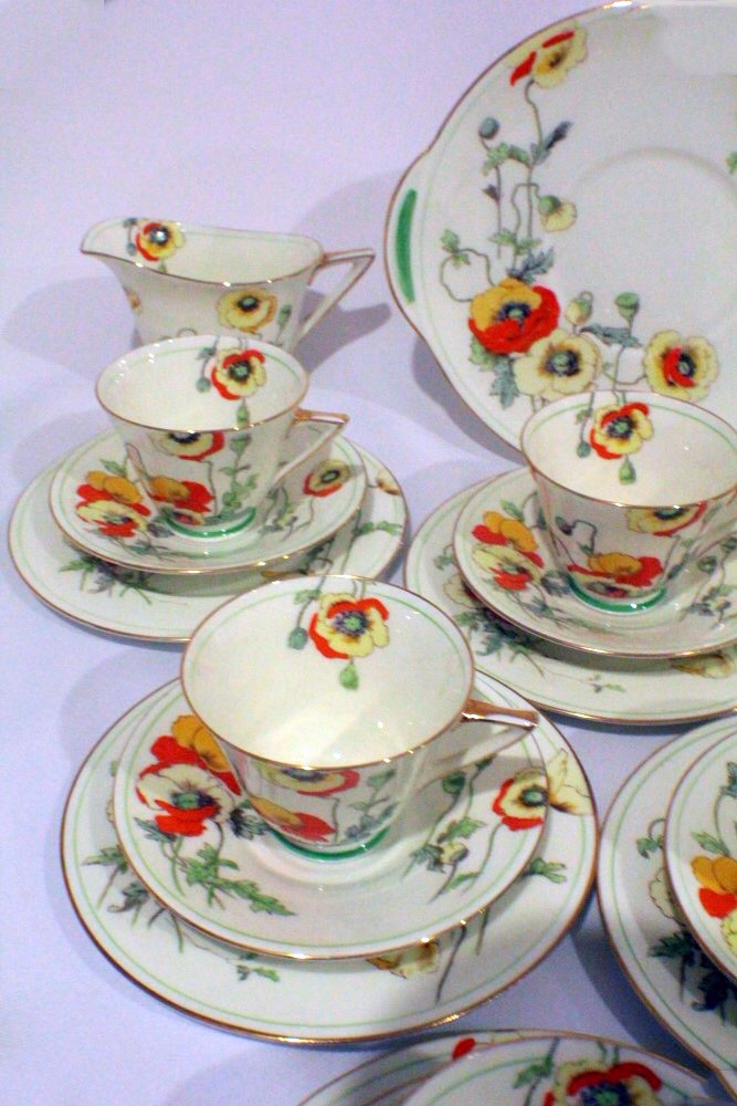 Today it is possible to build up a vintage set of china whether in one particular pattern if you are patient or by mixing and matching the many styles available. In general it will be of interest for collectors to note that many of the deco dinner services were produced in earthenware, whilst the same pattern could be bought in bone china as a tea set. The reason being the durability of earthenware.