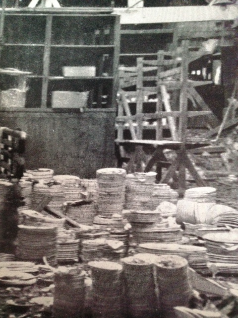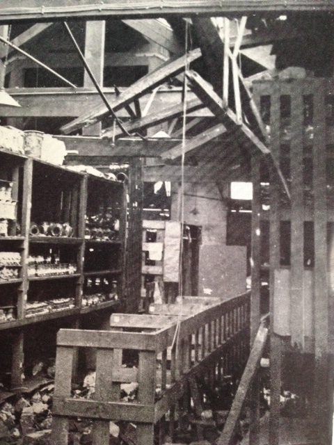 The war came early to the Burslem factory, when in October 1940 a three-storey warehouse housing finished goods and also the Art Director’s studios were bombed. Here you can see a couple of pictures of the debris it left behind. Try as I might the only things I can pin point are a Limited Edition Jug and what is probably some Flambé ware.