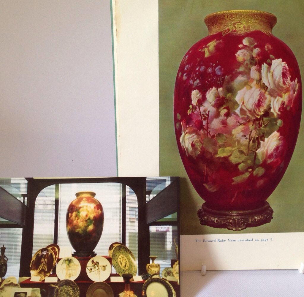 The Edward Raby vase in situe and as pictured in a catalogue. Once described as ‘a gem of gems’ the vase stands an impressive 24″ and dates to 1913.