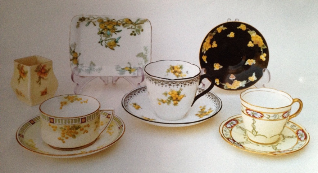 Doulton wares featuring Australian wattle, flannel flowers and other forna.